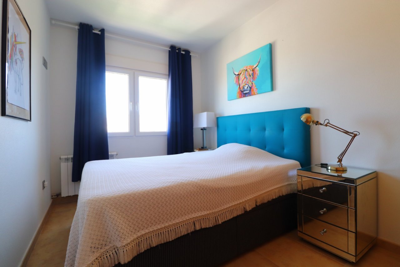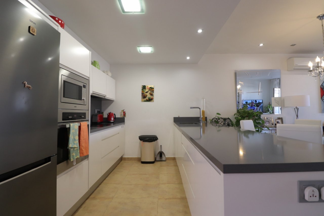 Dieses geräumige Haus erstreckt sich über drei Etagen und ist durchgehend wunderschön gestaltet. Es verfügt über einen offenen Wohnbereich mit Glastüren, die auf eine teilweise überdachte Terrasse führen, von der aus man einen Blick auf den Gemeinschaftspoolbereich hat. Die moderne Einbauküche ist elegant und funktional, und auf der Hauptebene befindet sich auch eine praktische Garderobe. Eine Treppe führt sowohl in den ersten Stock als auch hinunter in die große Tiefgarage. Im Obergeschoss befinden sich drei Doppelzimmer, alle mit Einbauschränken. Zwei der Schlafzimmer haben Zugang zu privaten Terrassen, von denen eine einen Blick auf die Berge bietet, und es gibt zwei stilvolle Duschbäder, darunter eines en suite zum Hauptschlafzimmer. Draußen befindet sich ein gefliester, pflegeleichter Garten, und die 58 m² große Garage ist über einen sicheren Eingang mit Tor zugänglich. Zu den Extras gehören eine Klimaanlage und der Zugang zu einem wunderschön gepflegten Gemeinschaftspool.