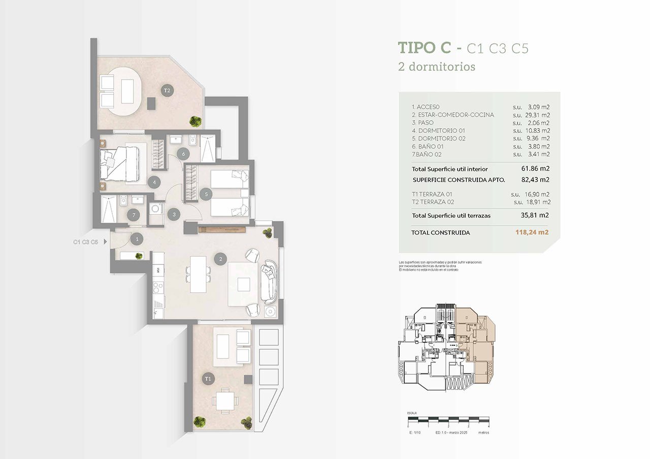 Diese modernen Wohnungen in Strandnähe verfügen über eine konstruierte Fläche von ca. 108 m² - 118 m² (verschiedene Modelle, inklusive Terrassen) mit