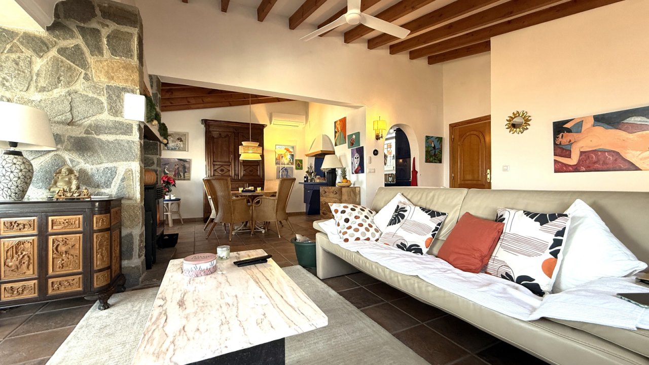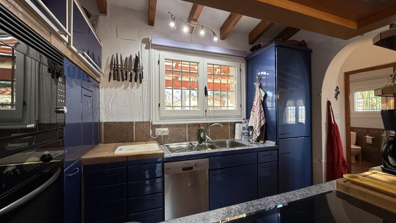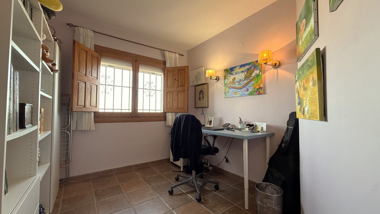 This well-maintained property in Monte Pego offers beautiful views and a practical layout over two levels. On the main level there is an open-plan living area with large windows and an open kitchen. A guest WC is also located on this floor. The lower level features three bedrooms and two bathrooms, making it ideal for family or guests. Outside, there is a private swimming pool and a sunny terrace with BBQ area. A carport and generous storage space are also available. The peaceful location, the views, and the functional layout make this property attractive both as a holiday home and as a permanent residence.
