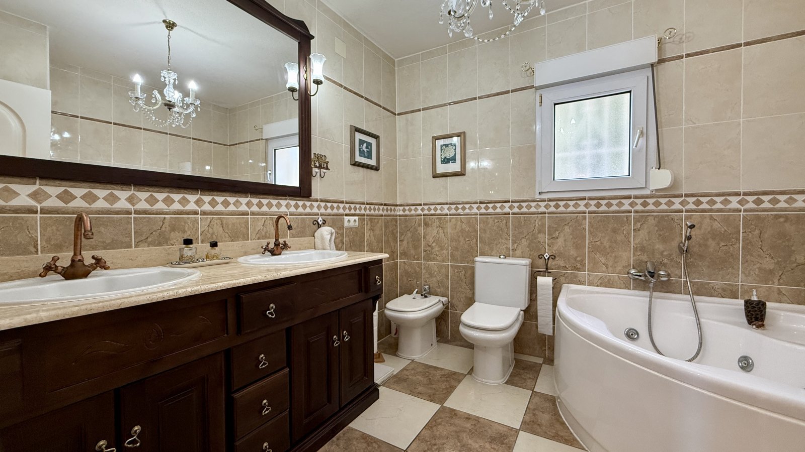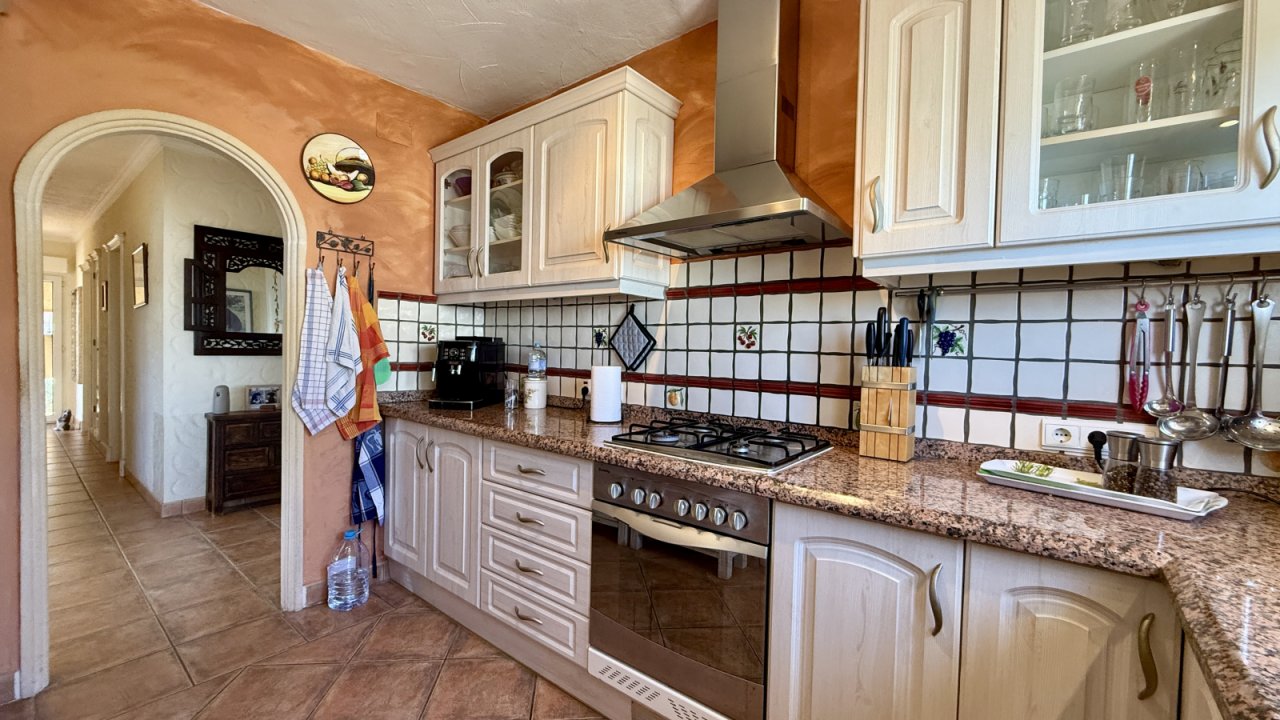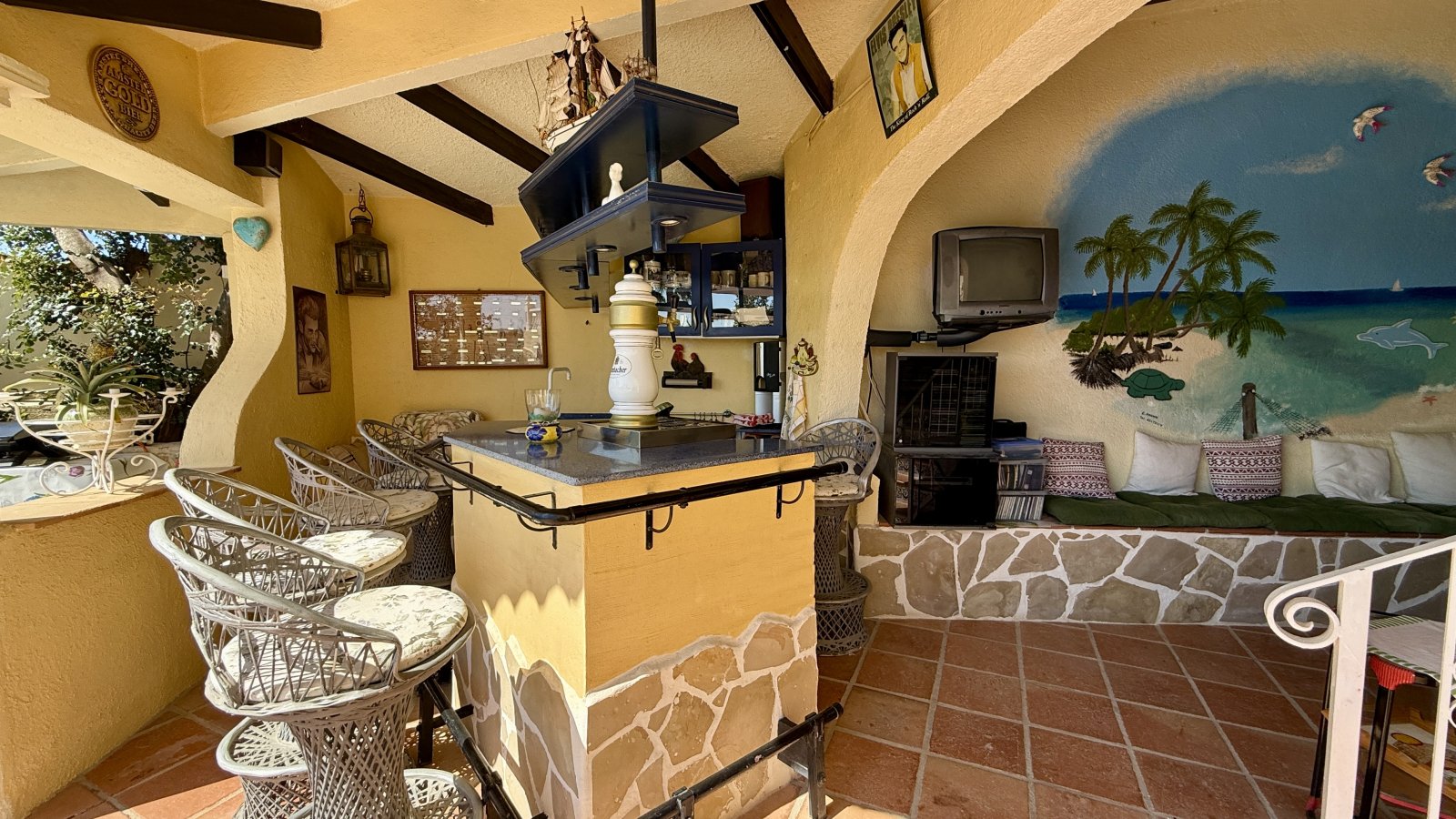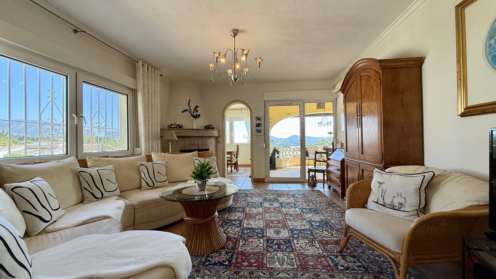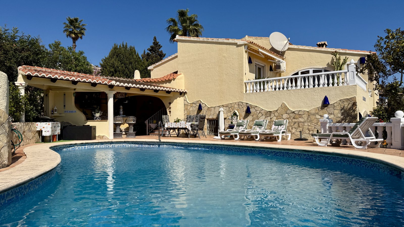 This villa is located in a beautiful, quiet area of Moraira and offers exactly what many people are looking for here: plenty of sunshine, stunning sea views, and ample space – both inside the house and outdoors. There are a total of four bedrooms and three bathrooms. Particularly practical is the separate guest area, which is ideal for visitors or simply for creating more privacy in everyday life. The living area is bright and welcoming, with direct access to the terraces. Around the house, there are several seating areas, so you can always find the perfect spot depending on the time of day. The outdoor area is a real highlight: a large pool, plenty of space to relax, and an outdoor bar that is perfect for long evenings with family or friends. Practical aspects have also been considered, with a garage and additional parking spaces on the property. Overall, this is a property that works well as a permanent residence but is equally suitable as a holiday home – uncomplicated, with everything you need, and located in an area where you quickly feel at home.