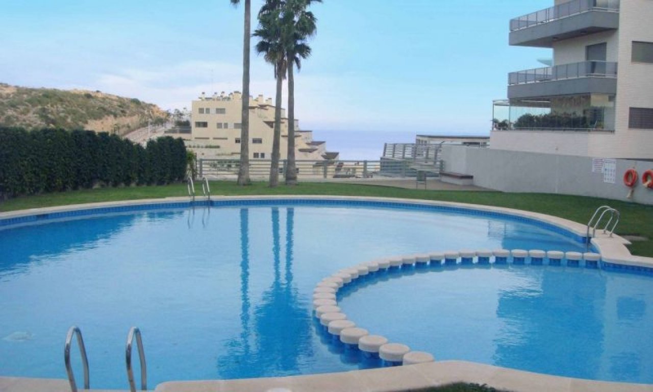 Apartamento de 2 dormitorios, 2 baños, 4 piscinas comunitarias, plaza de garaje subterránea y fantásticas vistas al mar a solo 300 m de la playa