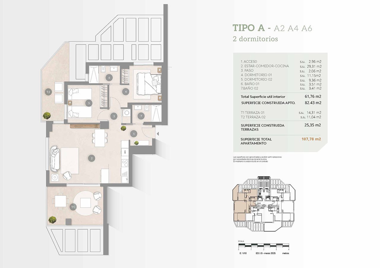 El complejo que está situada a tan sólo 200 m de la playa estará compuesta por 88 viviendas de 2, 3 y 4 dormitorios, distribuidas en 2 edificios de 15 plantas.