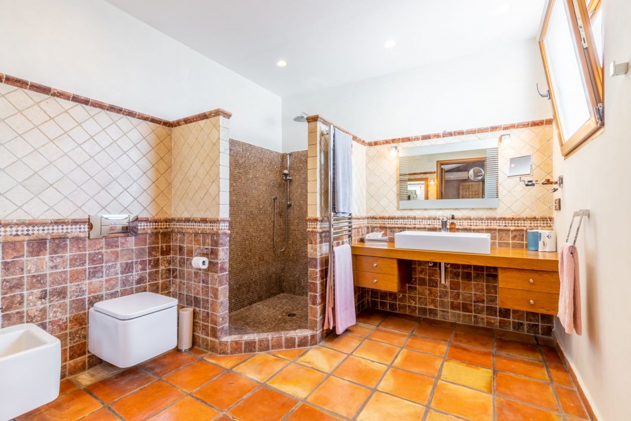 La vivienda principal ofrece 4 amplios dormitorios, 3 baños en suite y un aseo de cortesía, distribuidos de forma funcional y con un exquisito cuidado por los detalles. Los materiales nobles, como las vigas de madera, los suelos de terracota, la emblemática piedra tosca y la calefacción por suelo radiante, aportan calidez, elegancia y carácter mediterráneo a cada estancia.…