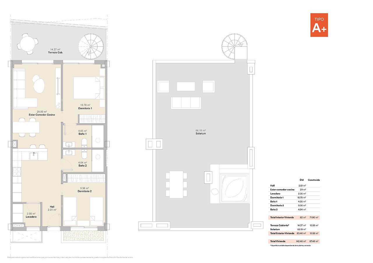 1 solarium (a unos 66 m²).
