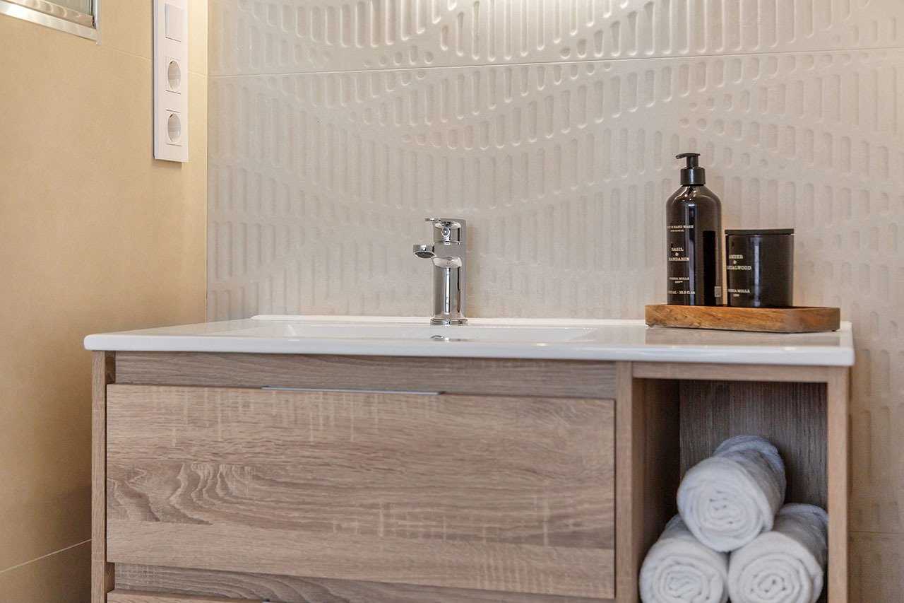 El complejo consta de 28 elegantes apartamentos de 2 y 3 dormitorios y 1 villa de 3 dormitorios, que combinan un diseño contemporáneo con una calidad y fun¬cionalidad excepcionales. Su ubicación inmejorable brinda vistas panorámicas al campo de golf y al Mar Menor, ofreciendo un refugio de tranquilidad y so¬fisticación. El complejo tiene una piscina que ofrece diversos ambientes: una zona de playa, un área lounge dentro de la piscina y un solárium.