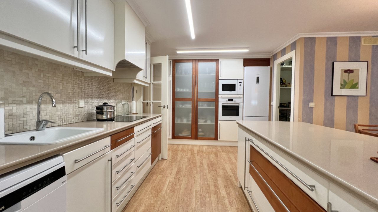 En una atractiva ubicación de Denia, este extraordinario ático dúplex se presenta como una verdadera joya inmobiliaria para compradores exigentes. Su generosa distribución, los materiales de alta calidad y varias amplias terrazas, coronadas por una piscina privada en la azotea, hacen de esta propiedad una oportunidad única. Nada más entrar, impresiona la elegante entrada con escalera abierta y cálidos suelos de madera de cerezo, que se extienden por toda la zona de estar. La luminosa sala de estar y el comedor ofrecen un ambiente elegante con acceso directo a la amplia terraza principal. Las grandes puertas correderas proporcionan mucha luz natural y crean una transición fluida entre el interior y el exterior. La cocina independiente y totalmente equipada impresiona por su tamaño, su amplia superficie de trabajo y sus accesorios de alta calidad, ideales para familias o cocineros aficionados apasionados.…