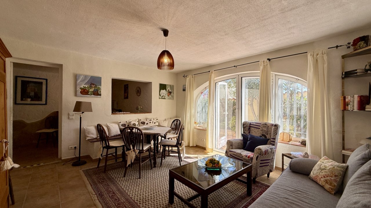 Esta villa se encuentra en una zona bonita y tranquila de Moraira y ofrece exactamente lo que muchos buscan aquí: mucho sol, magníficas vistas al mar y espacio suficiente, tanto dentro de la casa como en el exterior. En total hay cuatro dormitorios y tres baños. Especialmente práctico es el área de invitados independiente, ideal para visitas o simplemente para disponer de mayor privacidad en el día a día. La zona de estar es luminosa y acogedora, con acceso directo a las terrazas. Alrededor de la casa hay varias zonas para sentarse, por lo que siempre se puede encontrar el lugar perfecto según la hora del día. El exterior es un verdadero punto destacado: una gran piscina, mucho espacio para relajarse y un bar exterior ideal para largas veladas con familia o amigos. También se ha pensado en la parte práctica, con garaje y plazas de aparcamiento adicionales en la propiedad. En general, una propiedad que es perfecta tanto como residencia habitual como casa de vacaciones: cómoda, con todo lo necesario y ubicada en una zona donde es fácil sentirse a gusto.