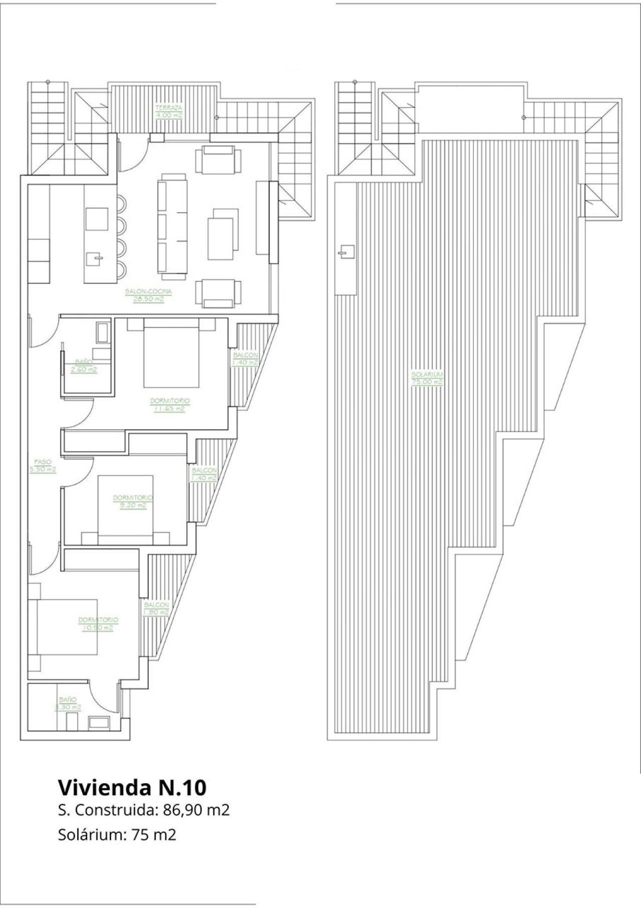Appartements au dernier étage avec 3 chambres, 2 salles de bain, toit-terrasse et piscine communautaire