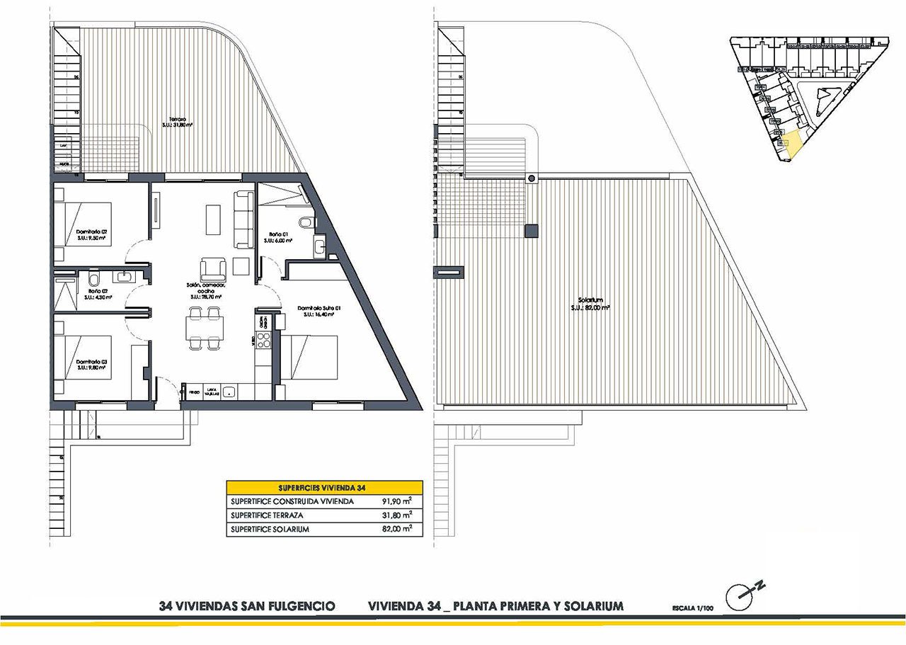 Appartements au dernier étage avec 3 chambres, 2 salles de bains, toit-terrasse, parking privé et piscine communautaire