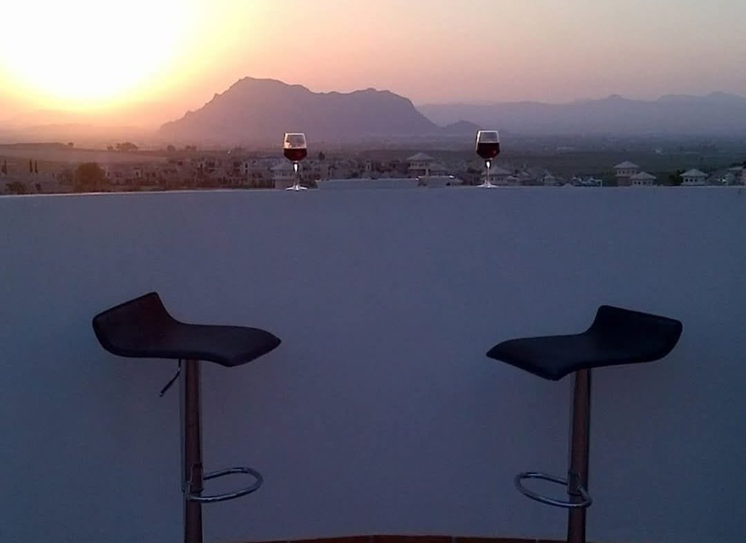 En revenant à l'escalier et en montant au premier étage, une porte donne accès à un grand solarium exposé ouest, baigné de soleil tout l'après-midi. Si vous y séjournez, vous pourrez admirer le coucher de soleil derrière les collines au loin. De retour à l'intérieur, vous trouverez la chambre principale, la plus grande des chambres, dotée d'un dressing et de sa propre salle de douche attenante. Des portes coulissantes en verre offrent un accès indépendant au solarium. En descendant l'escalier, vous découvrirez un jardin tout autour de la villa, qui nécessite quelques travaux, mais qui est suffisamment grand pour accueillir votre propre piscine privée. La piscine commune est à quelques pas seulement ; à vous de choisir !