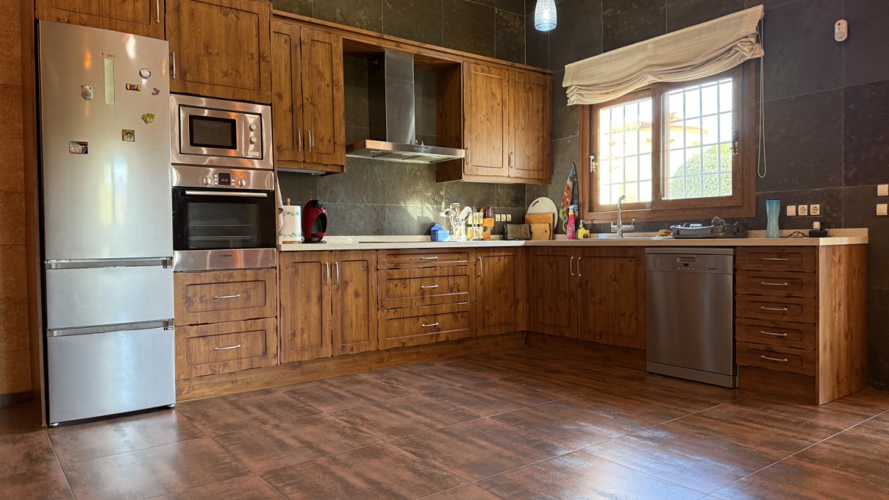 Construite avec des murs isolés de 45 cm en polyuréthane et revêtement en pierre naturelle, cette résidence offre un confort et une efficacité exceptionnels. Seize panneaux solaires et un réservoir de gaz de 1 000 litres pour le chauffage central et l’eau chaude réduisent considérablement les coûts de fonctionnement, tandis qu’une citerne d’eau de pluie de 35 m³ alimente la piscine et le nettoyage extérieur. La propriété comprend une cave à vin souterraine, un espace de rangement de 20 m², la climatisation dans toutes les pièces, une cheminée à bois dans le salon et une impressionnante piscine d’eau salée couverte et chauffée de 8×4 m avec électrolyse et contrôle automatique du pH. Des plafonds de plus de 4 mètres créent dans toute la maison une impression extraordinaire d’espace et de lumière. Les finitions de haute qualité comprennent des plafonds et portes en bois massif, des fenêtres PVC à double vitrage et des intérieurs élégants baignés de lumière naturelle. À l’extérieur, plusieurs terrasses (dont une véranda), une pergola et un parking pouvant accueillir jusqu’à trois véhicules complètent cette propriété exceptionnelle. Son design durable, ses équipements haut de gamme et ses proportions généreuses justifient pleinement son exclusivité et son prix, offrant une résidence prestigieuse toute l’année.