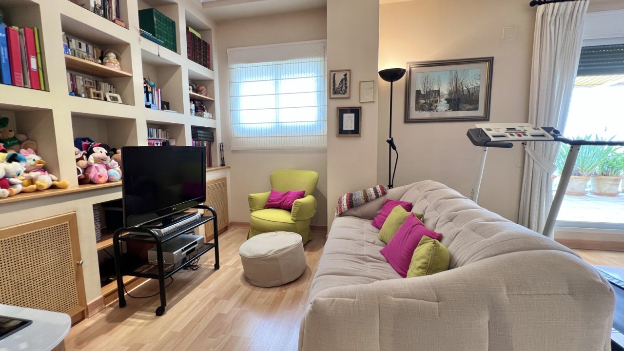 Le penthouse dispose de 4 chambres spacieuses, de 3 salles de bains élégantes, de toilettes pour invités et d‘un salon/bureau supplémentaire à l‘étage supérieur. La chambre principale avec accès à la terrasse offre un havre de paix et d‘intimité. Les salles de bains sont équipées de manière haut de gamme, certaines avec double lavabo et baignoire/douche. Plusieurs terrasses offrent du soleil et de l‘ombre à tout moment de la journée et une vue imprenable sur le Montgo et le château de Denia. Le point fort absolu est la terrasse privée sur le toit avec sa propre piscine - un refuge exclusif avec une vue imprenable sur Dénia et la campagne environnante. Ici, vous pouvez profiter de la qualité de vie méditerranéenne au plus haut niveau, que ce soit pour prendre un bain de soleil, vous détendre ou passer des soirées conviviales en famille ou entre amis.