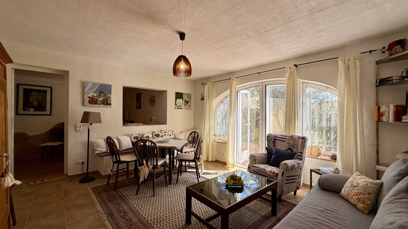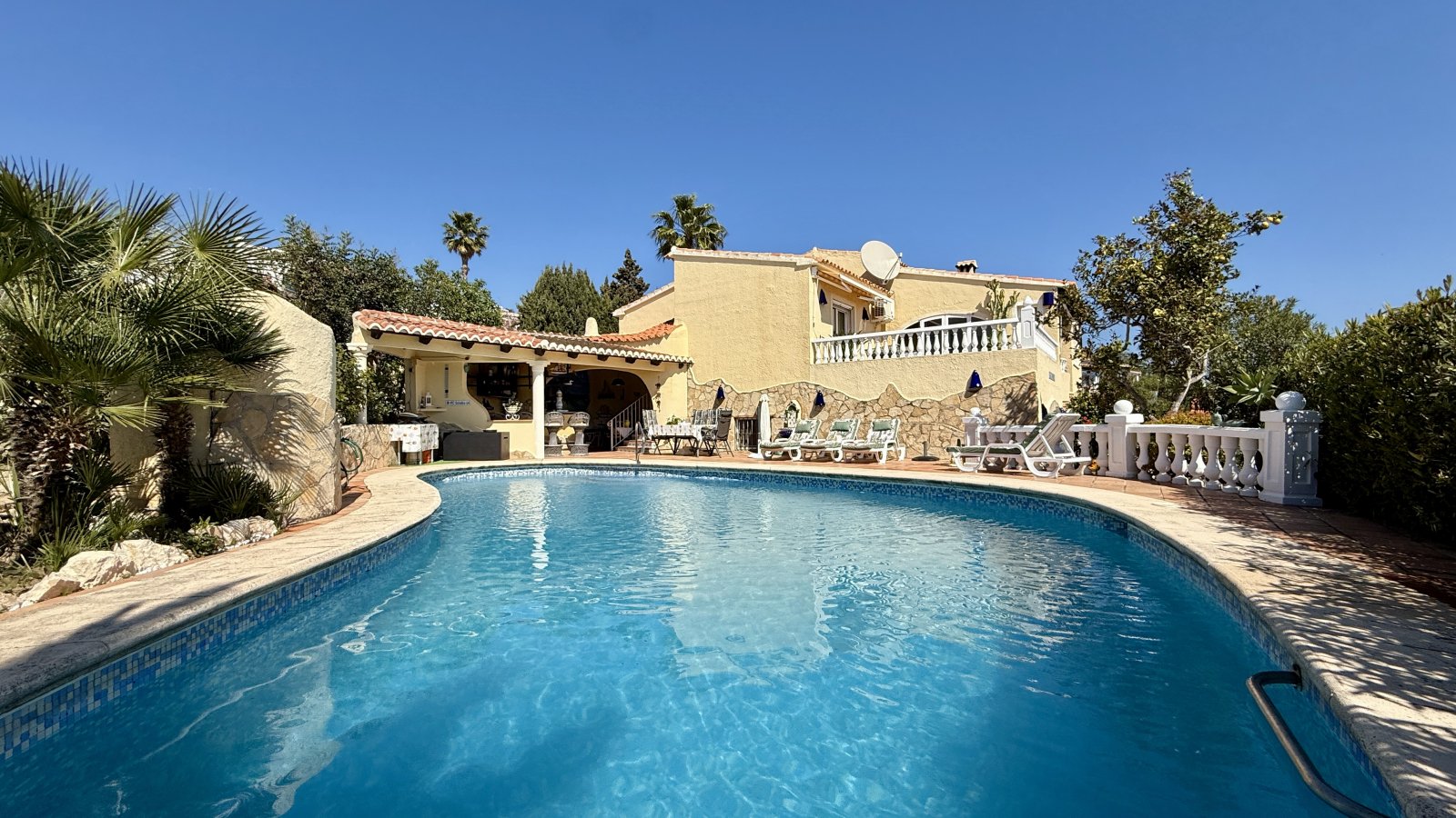 Cette villa est située dans un quartier calme et agréable de Moraira et offre exactement ce que beaucoup recherchent ici : beaucoup de soleil, une superbe vue sur la mer et suffisamment d’espace, à l’intérieur comme à l’extérieur. Elle dispose de quatre chambres et de trois salles de bains. Un espace invités séparé est particulièrement pratique, idéal pour recevoir ou simplement pour plus d’intimité au quotidien. Le séjour est lumineux et accueillant, avec un accès direct aux terrasses. Autour de la maison, plusieurs espaces de détente permettent de profiter de chaque moment de la journée. L’extérieur est un véritable atout : une grande piscine, beaucoup d’espace pour se détendre et un bar extérieur parfait pour passer de longues soirées en famille ou entre amis. Les aspects pratiques ont également été pris en compte, avec un garage et des places de stationnement supplémentaires sur le terrain. Dans l’ensemble, une propriété idéale comme résidence principale ou maison de vacances – pratique, bien équipée et située dans un environnement où l’on se sent rapidement chez soi.